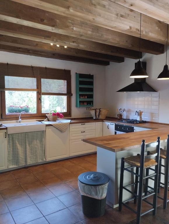 CalBufulà compta amb jardí, terrassa, zona de barbacoa i wifi gratis . Disposa de 4 dormitoris, 3 banys, roba de llit, tovalloles, TV de pantalla plana amb canals per satèl·lit, zona de menjador, cuina totalment equipada i pati amb vistes a la muntanya.