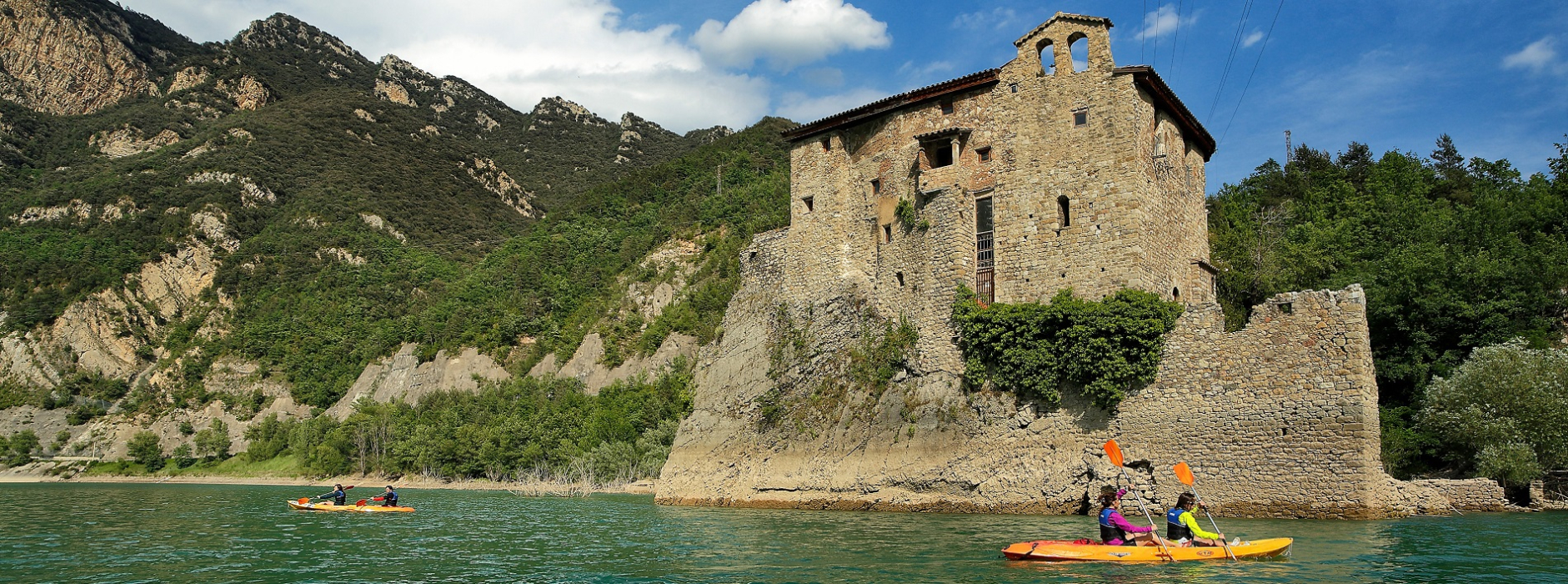 La Baells disposa de la primera via brava interior de Catalunya, un espai de 1000 metres, perfectament abalisat per a l’entrenament de la natació en aigües obertes.