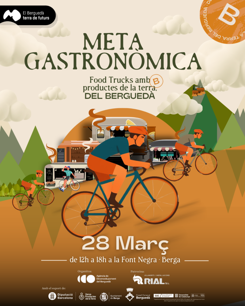 La “Meta Gastronòmica”: producte local i ciclisme s’uneixen a la Volta a Catalunya a Berga. L’Agència de Desenvolupament del Berguedà impulsa la “Meta Gastronòmica”, una acció especial que tindrà lloc el dissabte 28 de març a la Font Negra de Berga, coincidint amb l’etapa Berga–Queralt de la Volta Ciclista Masculina a Catalunya. Aquesta acció compta amb el suport i patrocini d’Aïllaments i Instal·lacions Rial.