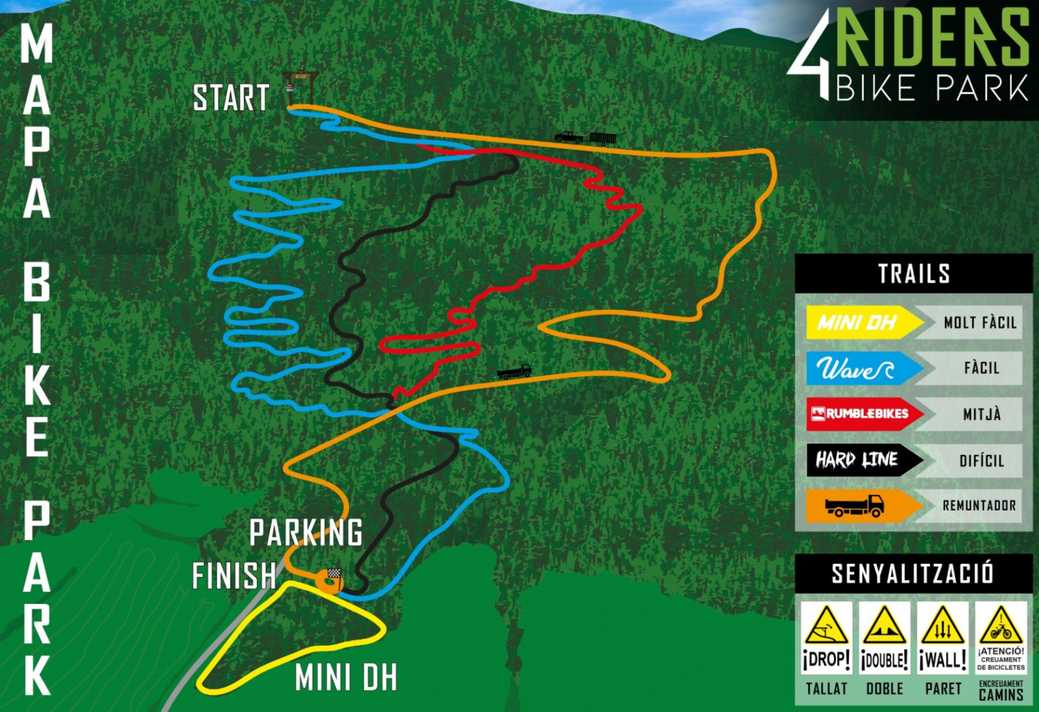 Trobaràs els horaris d’obertura, preus i contacte a: www.4ridersbikepark.com