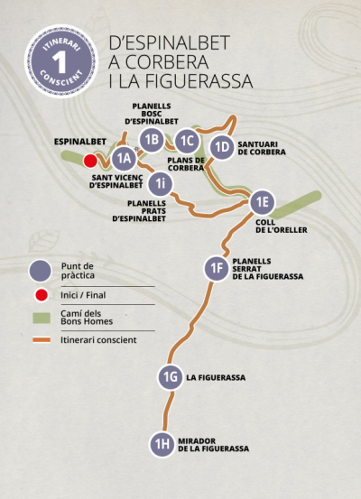 També es passa per espais amb història com l’església de Sant Vicenç d’Espinalbet , ubicada en l’indret on hi hagué el Castell del reconegut trobador Guillem de Berguedà, i el Santuari de Corbera, en un enclavament molt especial amb uns planells ideals per respirar la calma de l’indret.