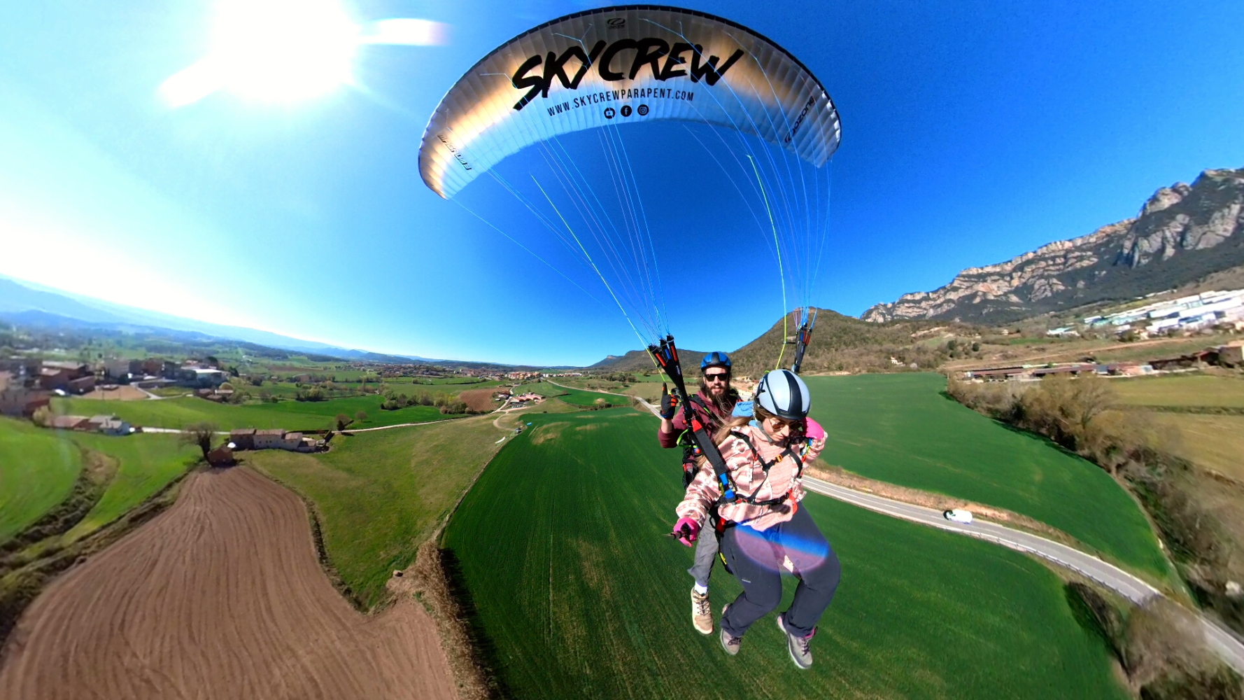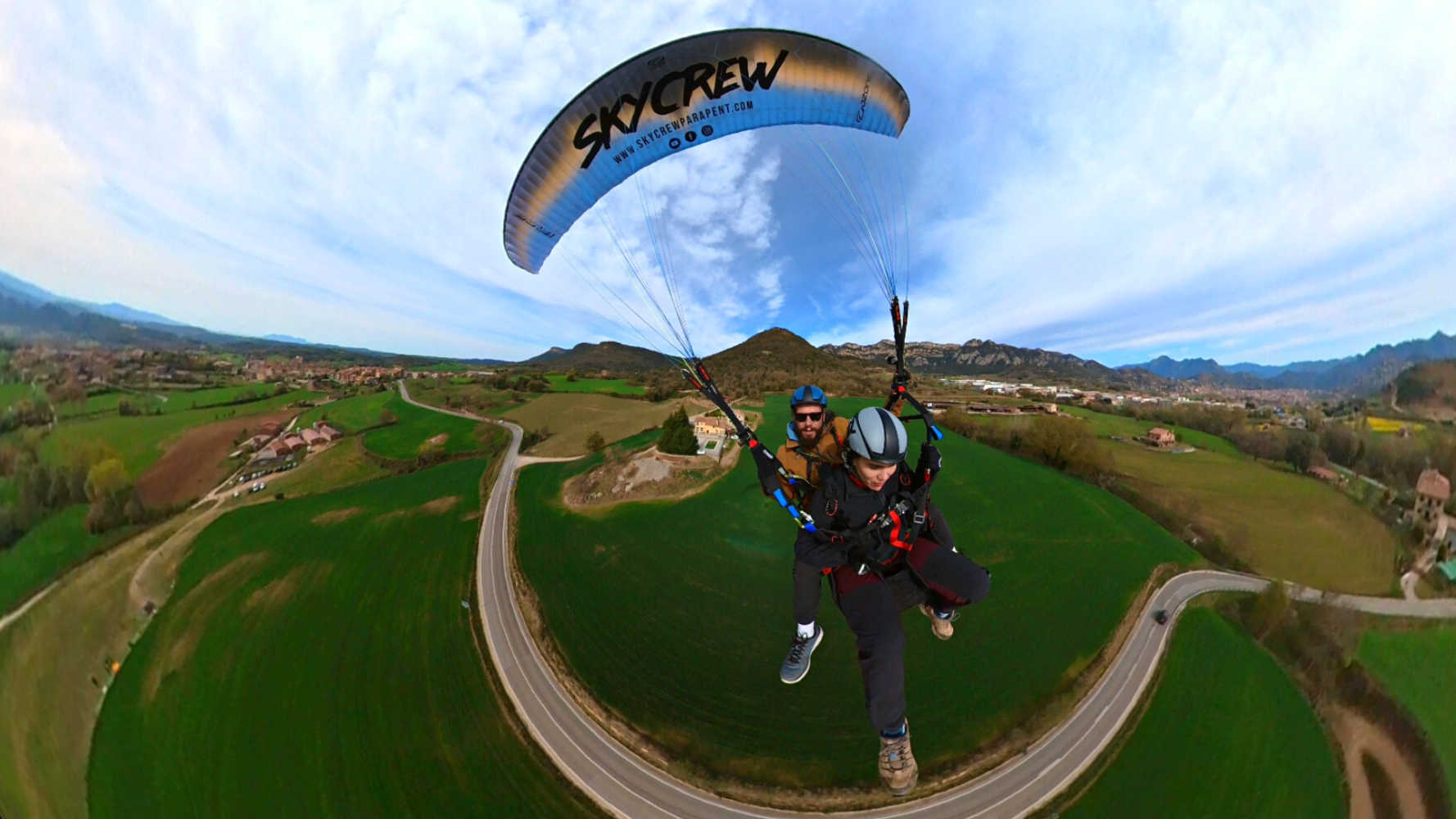 A SkyCrew Parapent oferim vols biplaça tant en parapent com en paratrike (parapent motoritzat) a diferents indrets de Catalunya, però sobretot al Berguedà. Descobreix la sensació de volar triant entre les nostres experiències, des de vols tranquils fins als més adrenalínics. A més a més, podràs immortalitzar la teva experiència afegint un reportatge de fotos i vídeo normal o amb edició.