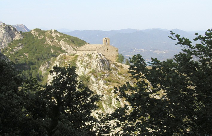 Sant Pere de Madrona es una pequeña iglesia románica que fue parroquial hasta el siglo XIX. Desde aquí contemplaréis unas buenas panorámicas. En el puerto de debajo de la iglesia, volveréis a encontrar las marcas vamarillas que os subirán por la umbría hasta Queralt, en medio de un bosque de pinos y hayas. Cuando bajéis por el otro lado veréis que la vegetación cambia radicalmente y que ahora pasa a ser de encinas y boj.