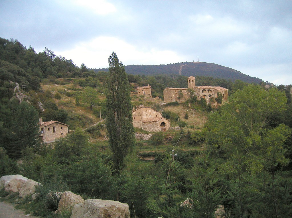 El camino entra en la moderna urbanización de Espinalbet, cruza la carretera de los Rasos de Peguera y vuelve a tomar el camino antiguo hacia la iglesia. La iglesia no tiene nada destacable pero detrás de ella se un plano elevado y unas paredes perimetrales donde tuvo su castillo Guillem de Berguedà, uno de los grandes trovadores catalanes que escribió bellos versos de amor, pero también duras sátiras de sus contemporáneos, hecho que le hizo ganarse muchas enemistades y que finalmente fue la causa de su muerte.
