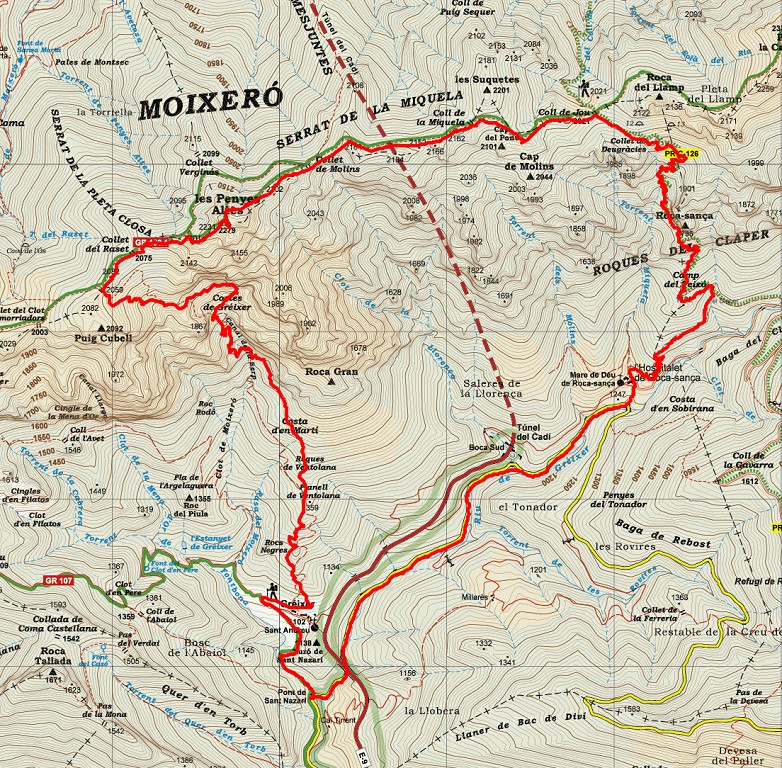 • Señalización: Marcas: amarillas hasta el Claper, amarillas y blancas (PR C-126) hasta el puerto de Jou; rojas y blancas (GR 150-1) hasta la entrada de la canal de la Serpiente; amarillas hasta Gréixer; rojas y blancas (GR-107) hasta el fin