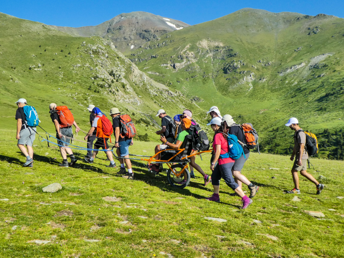 Guies d'Arrel est né de notre passion pour la nature et la montagne. Notre intérêt et notre gratitude envers ce milieu et cet environnement nous pousse à penser qu'il ne peut exister de limites quand il s'agit d'en profiter.C'est pour cet raison que nous nous sommes formés pour travailler depuis et pour l'intégration des personnes à mobilité réduite, personnes non-voyantes, sourdes et sans handicap, c'est à dire pour tout le monde. Nous voulons encourager la prise de conscience de l'environnement, notre milieu naturel et l'inclusion de tous.Un de nos objectifs est l'intégration sociale de toutes les personnes handicapées. |