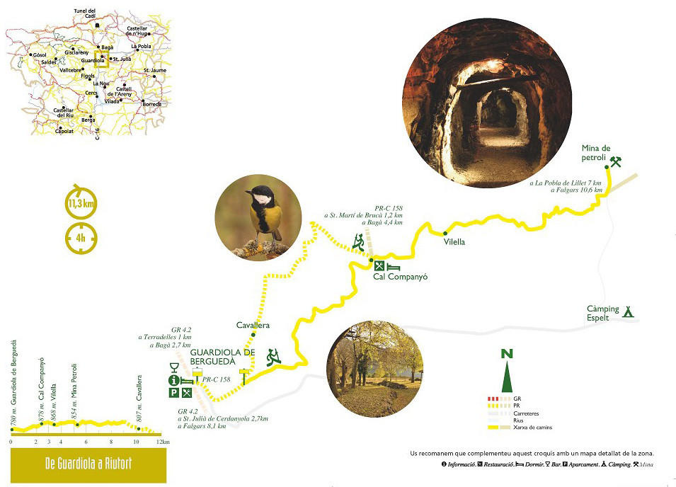 Il est bien connu que Berguedà était l'une des zones d'extraction de charbon les plus précieuses du pays. Mais sait-on que du pétrole de Berguedà a été extrait? Cet itinéraire vous mènera à la mine de pétrole Riutort, désormais adaptée aux touristes * et où vous pourrez, en plus de voir et de sentir de l'or noir, vous plonger dans son complexe de galeries, une chauve-souris. et salamandres. Le tout dans un magnifique cadre naturel caché en bordure du parc naturel de Cadí Moixeró.